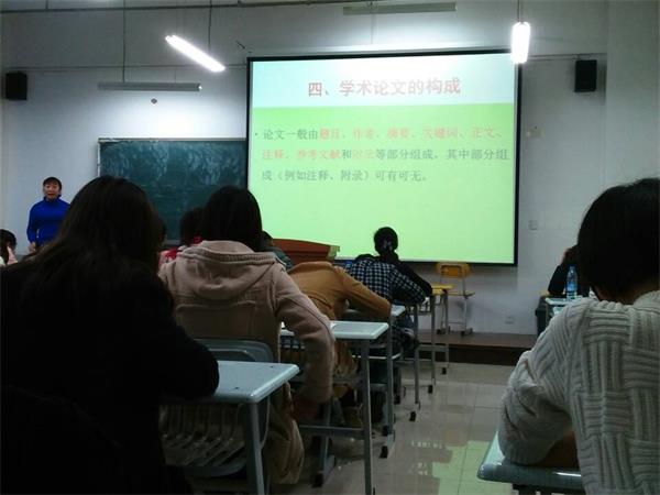 2014年12月5日下午2:30,开云王金娥教授在1—203教室作了题为《学术论文写作技巧》的学术讲座,开云2013级汉语言文学专业100余名同学聆听了讲座。
