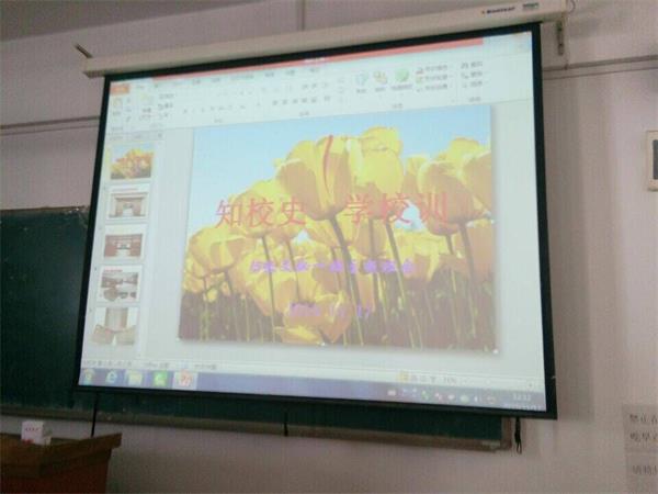 员工会干部分别到各班通过ppt和校史讲稿等方式,介绍学校的发展历史。接着各班同学们互相交流,并且以“我眼中的校园”为主题,谈到自己对学校的认识和了解。最后,同学们围绕公司的发展历史及“明德强能,励志笃行”的校训进行演讲。