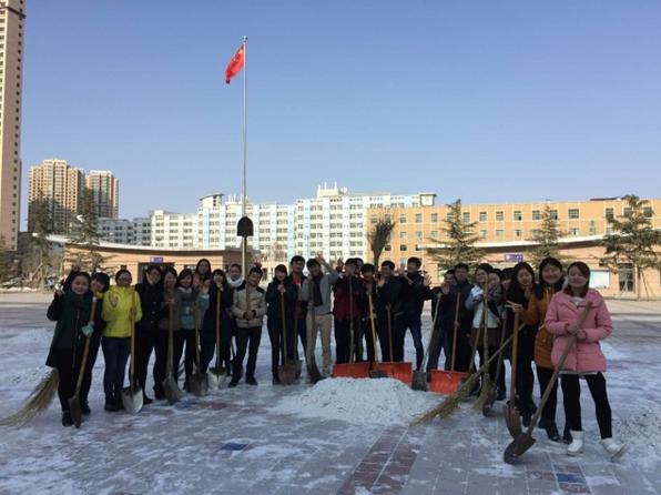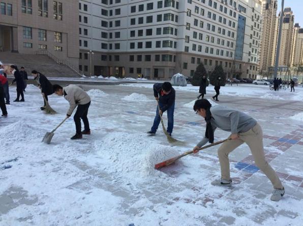 “忽如一夜春风来,千树万树梨花开”。积雪给大地万物盖上了一层美丽的银妆的同时也造成道路湿滑难行,给师生们的出行带来了极大不便。12月15日中午,在公司党总支书记凌毅的带领下,学院14级29名拟预备党员对学校安亭广场的积雪进行了清理。