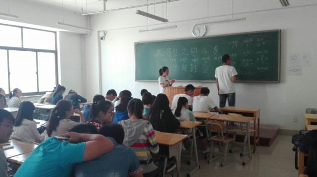 2016年5月9日,在3号教学楼601教室15级汉语言文学三班召开关于文明修身及其形象大使评选活动的班会。