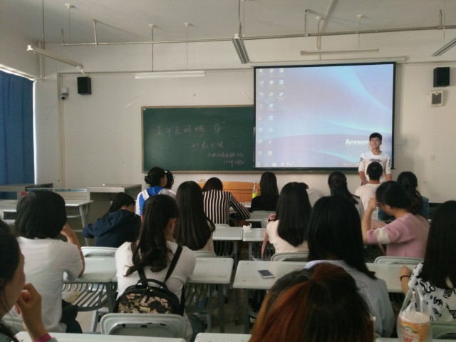 2016年5月9号早上,14级汉语言文学1班在一号楼的教室进行校园文明的宣传和学习活动。班长高伟主持了本次活动