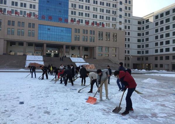 “忽如一夜春风来,千树万树梨花开”。积雪给大地万物盖上了一层美丽的银妆的同时也造成道路湿滑难行,给师生们的出行带来了极大不便。12月15日中午,在公司党总支书记凌毅的带领下,学院14级29名拟预备党员对学校安亭广场的积雪进行了清理。