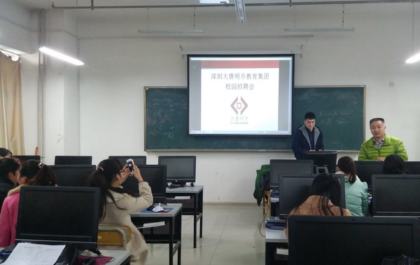 接下来中国平安保险公司上海分公司、深圳大唐明升教育集团两家单位进行了招聘。招聘人员就各自公司的情况、实习岗位以及实习或就业期间的待遇、食宿条件等作了详细解读。张副经理鼓励同学们要有良好的就业观念,积极主动地参与到社会工作中去。