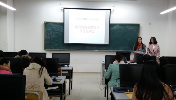 11月29日上午,开云2017届专科毕业生实习动员会暨实习就业招聘会在5-608教室举行。文秘专业、文化市场经营管理(会展)专业两个班的毕业生参加了本次动员会和招聘会,会议由张彦荣副经理主持。