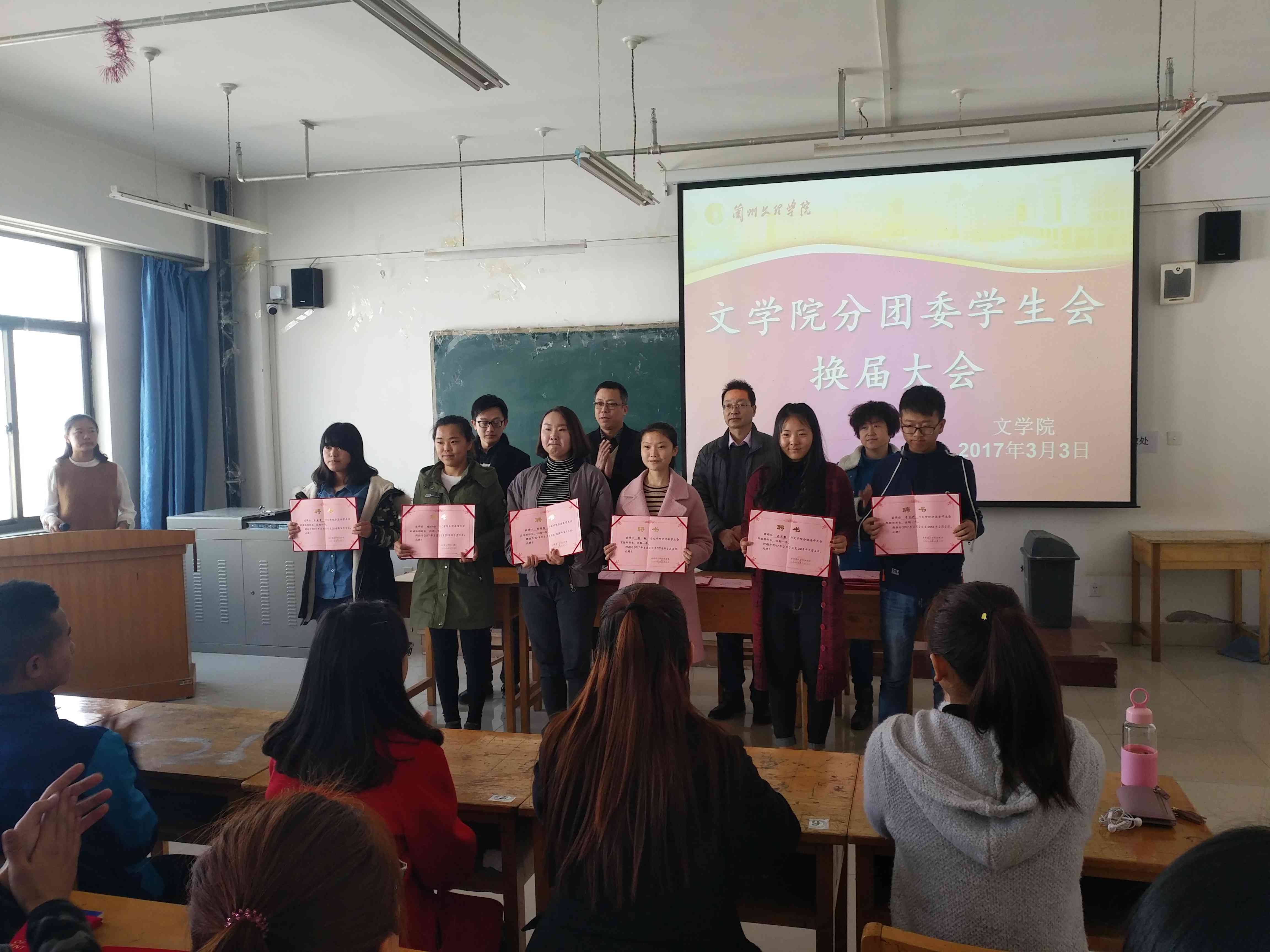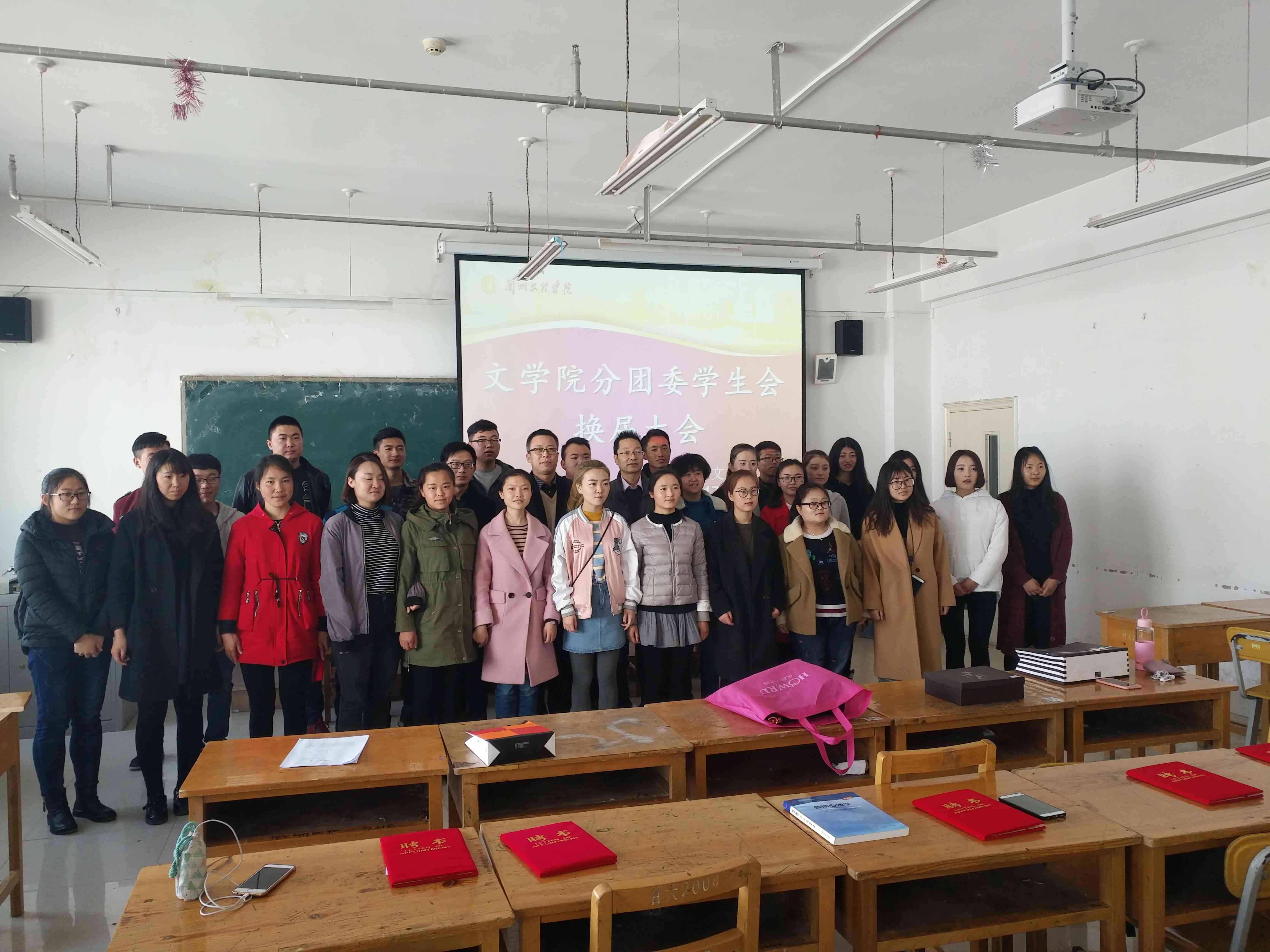 大会首先由上届主席闻杰雄代表分团委员工会对过去一年的工作进行总结发言,对学院领导、老师和同学们过去一年对员工工作给予的帮助和大力支持表示感谢,并对新一届员工干部提出要求,寄予厚望。接着由分团委书记孟煜杰老师宣布新一届主席团和各部部长人选,由院领导为新任员工干部颁发聘书并合影留念。大会第三项,由新任员工会主席田裕丰发表就职发言,他从组织建设,内部协调,服务员工等多个方面表达了自己的设想,并表示新一届分团委员工会将以百分百的热情投入到工作中去,不忘初心,接力前行;团结一致,努力工作,为同学们做好榜样,为老师们做好服务,让开云分团委员工会成为遵循“自我教育、自我管理、自我服务”方针的践行者、传播者,发挥好模范作用,做广大同学的知心朋友。