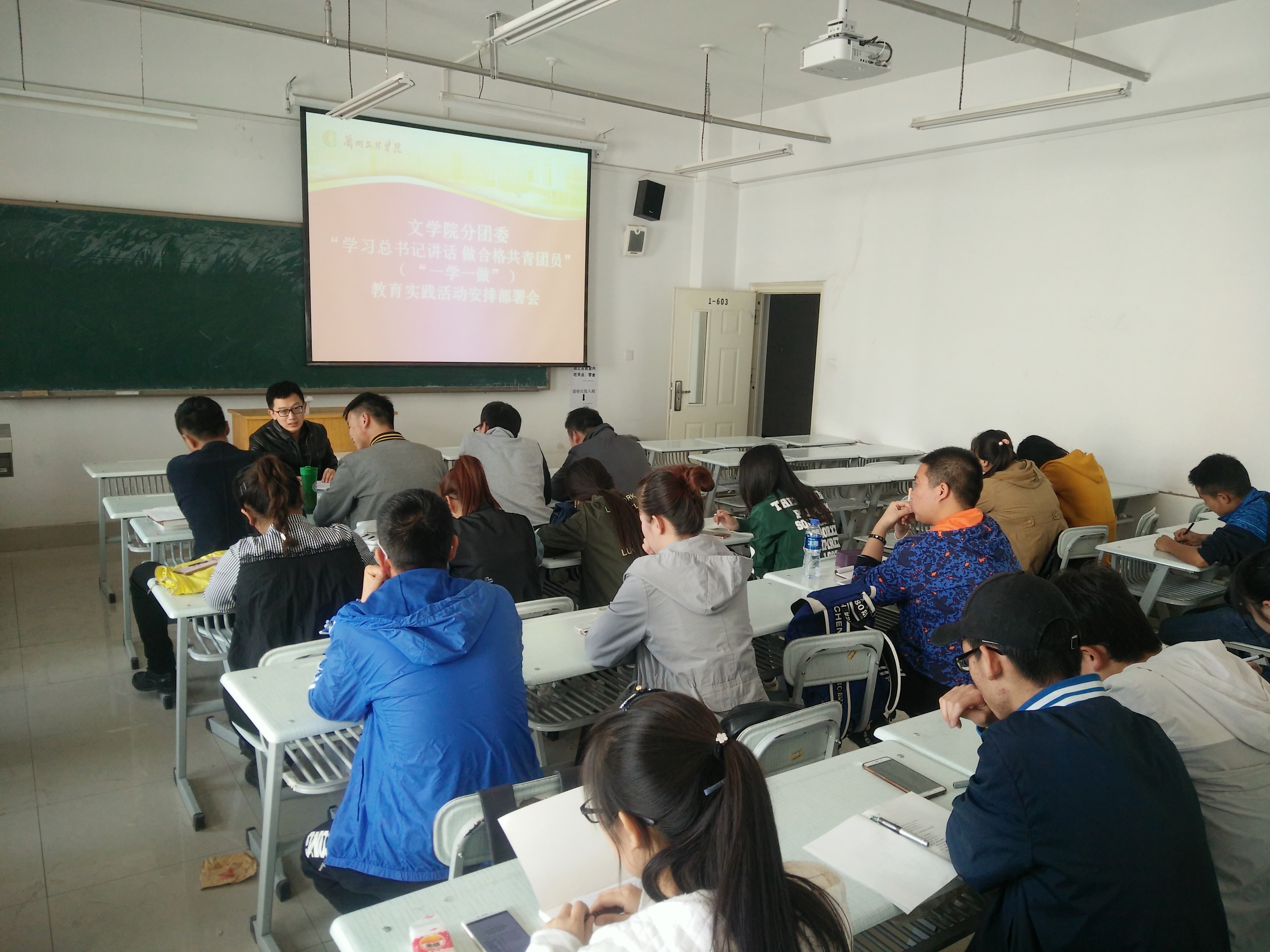 会上,孟老师传达了校团委《关于在全校团组织中开展“学习近平总书记讲话 做合格共青团员”教育实践活动实施方案》的文件精神,要求全体员工干部要带头认真学习文件内容,领会文件精神。以“一学一做”教育实践活动为契机,通过自学、主题团课、组织生活会等形式使全院共青团员重温团章、团史,深入学习习近平总书记系列讲话,特别是关于青少年和共青团工作的重要论述;通过开展“先进团支部魅力团支书”评选,“我的青春我的梦——学习近平总书记讲话做合格共青团员”主题征文、演讲比赛,志愿服务等活动,树立典型,充分发挥榜样的导向作用,引导广大共青团员树立“自我教育、自我管理、自我服务”的意识。