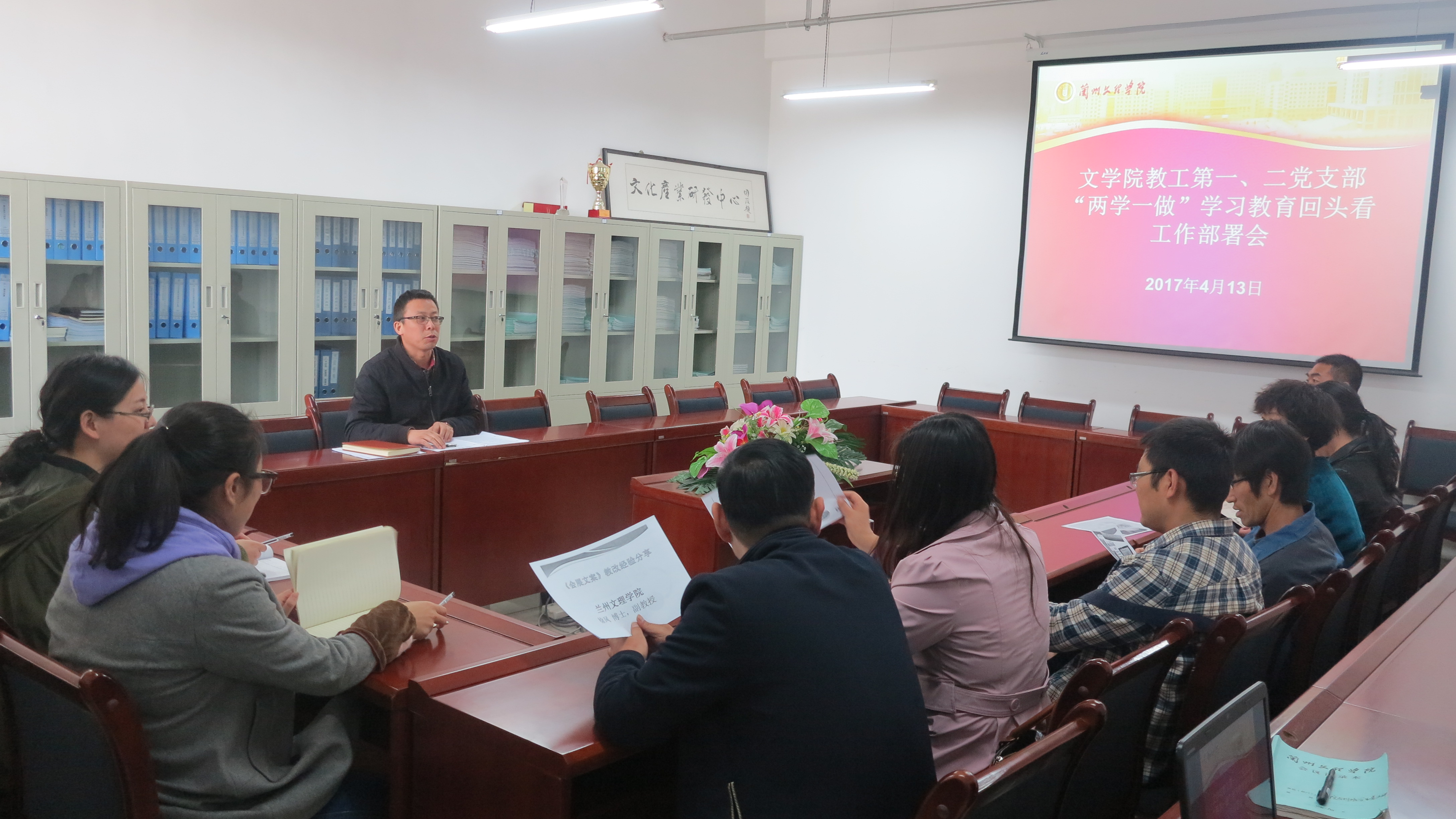 4月13日下午3:30在学院会议室召开了教工党员会议,专题安排部署“两学一做”学习教育“回头看”工作,并落实林铎省长批示精神。会上,党总支书记凌毅传达了公司党发17号文件精神,解读了《公司党总支“两学一做”学习教育“回头看”工作方案》。会议要求,按照“六查六看”,党总支、各党支部要对照检查、梳理分类、形成问题清单、建立整改台账。凌书记对学院“回头看”工作提出了具体要求,一是党总支、各党支部要明确职责,履行好第一责任人的职责,学院班子成员、总支委员及支部书记要牢固树立“四个意识”带头学习,先自查自纠;二是各党支部要严格执行“三会一课”制度,组织开展形式多样的党员教育和组织生活活动;三是认真查找会议记录情况、工作计划制定情况、党员活动日开展情况,建立规范的工作资料保存制度;四是区别对待查摆出的问题,梳理分类,认真研究,列出整改清单。五是学院全体党员要高度重视“回头看”工作,认真自查自纠,做到即知即改,遵规遵纪做合格党员。