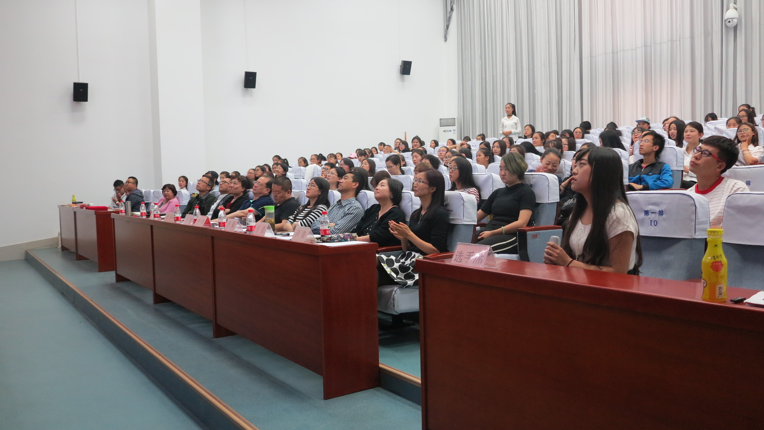 此次活动分为三大环节,分别是诗词对对碰、友情PK、终极挑战,期间为了提高观众的参与度更是设计了现场互动,不仅让选手们领略了中华诗词的魅力,而且现场的观众也一同学习了经典诗词。经过三关精彩绝伦的比拼,14级汉语言五班姚诗雨斩获一等奖,16级汉语言文学三班何文钦荣获二等奖,15级会展班齐晓文获得三等奖,杨沁怡、段国君、顾晓静三名同学获得优秀奖。