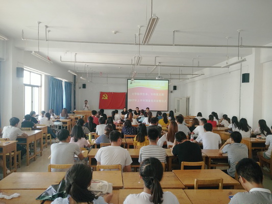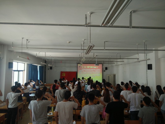 宣誓仪式上,全体党员起立,举起右拳,面向党旗和入党誓词,庄严宣誓,表达对党的忠诚和为党的事业奋斗终身的决心。预备党员代表崔旭鹏在发言中到:我们每一位新入党的同志,要实现今天的誓言,就必须在今后的生活、学习和工作中,不断加强对党的基本理论和党的知识的学习,加强党性修养,自我完善,自我革新,自我提高,坚定共产主义信仰,永远保持党员先进性,以自己富有成效的工作来履行誓言,为党旗争辉。并且提出,作为新党员,要向先进的老党员学习,讲政治有信念、讲规矩有纪律、讲道德有品行、讲奉献有作为,起好先锋模范带头作用。紧接着党员代表刘博见发言,该同志结合“两学一做”学习教育常态化制度化,主要对入党一年以来的学习进行了总结,他讲到:一年多以来的学习,我们同学自身政治觉悟有了很大的提高,自身行为也有了很大的改变。作为员工党员,我们可能还没有能力给社会做出太大的贡献,但是只要我们注意平时自身行为,把正能量传给更多的人,就是我们党员在“两学一做”学习教育活动中的最好实践,最后希望预备党员严格要求自身,努力成为一名合格的共产党员。