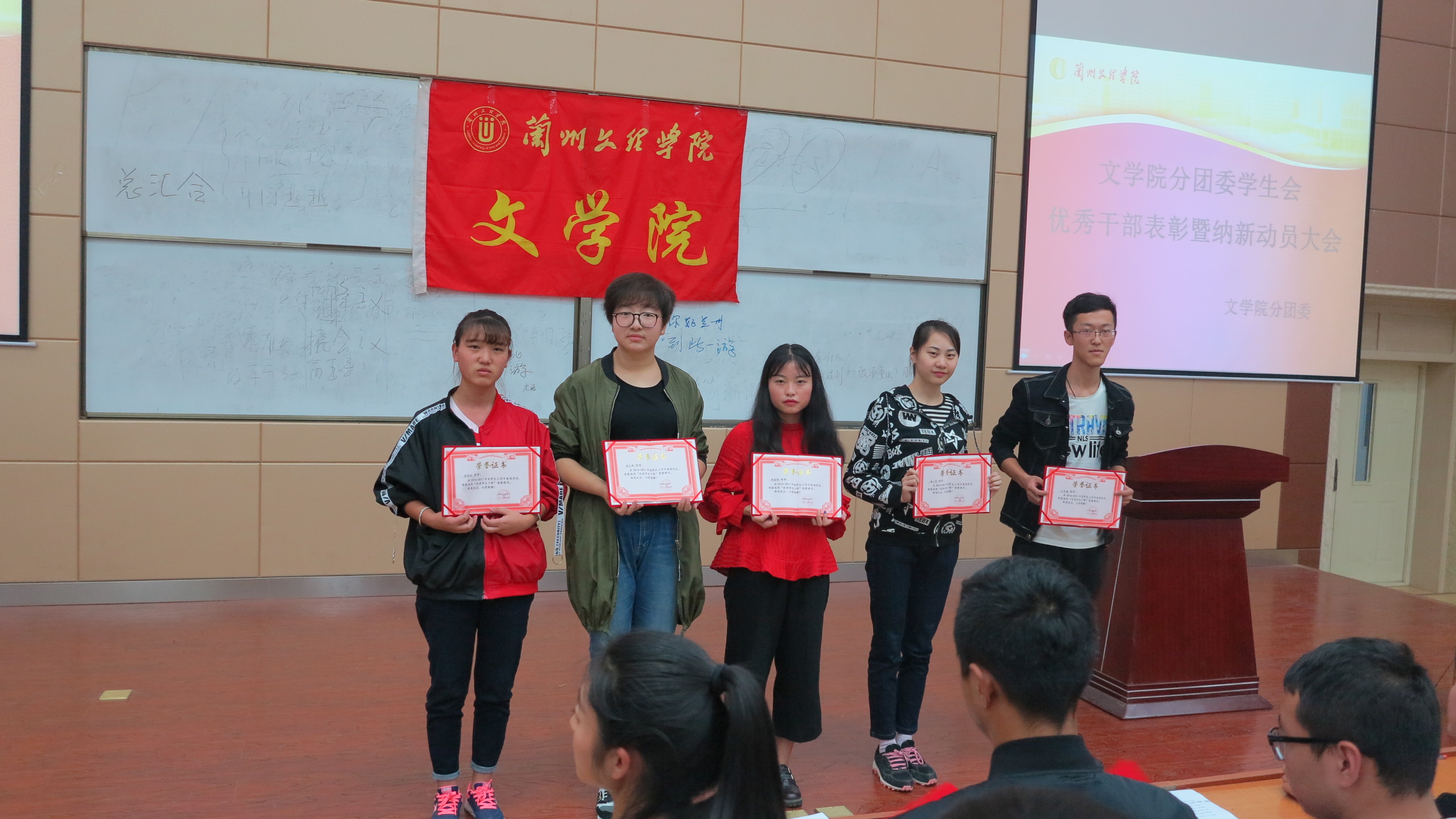 其次,主持人宣布2016-2017学年优秀员工干事,主席团向优秀干事颁发荣誉证书。