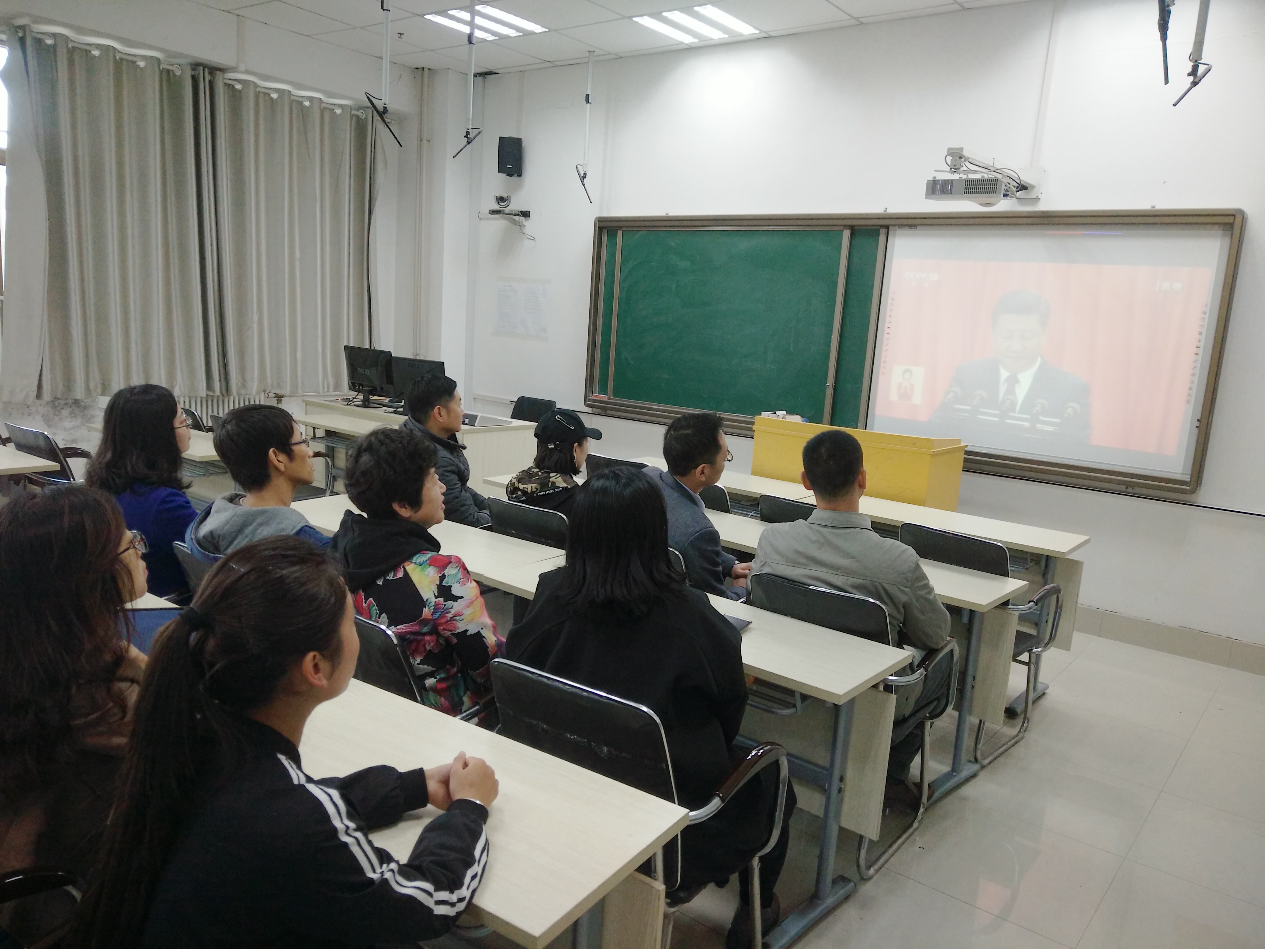 10月18日上午9点,公司党总支组织无课教师,员工党员、员工干部分别在5号楼606教室和1号楼504教室集中观看了十九大开幕式。