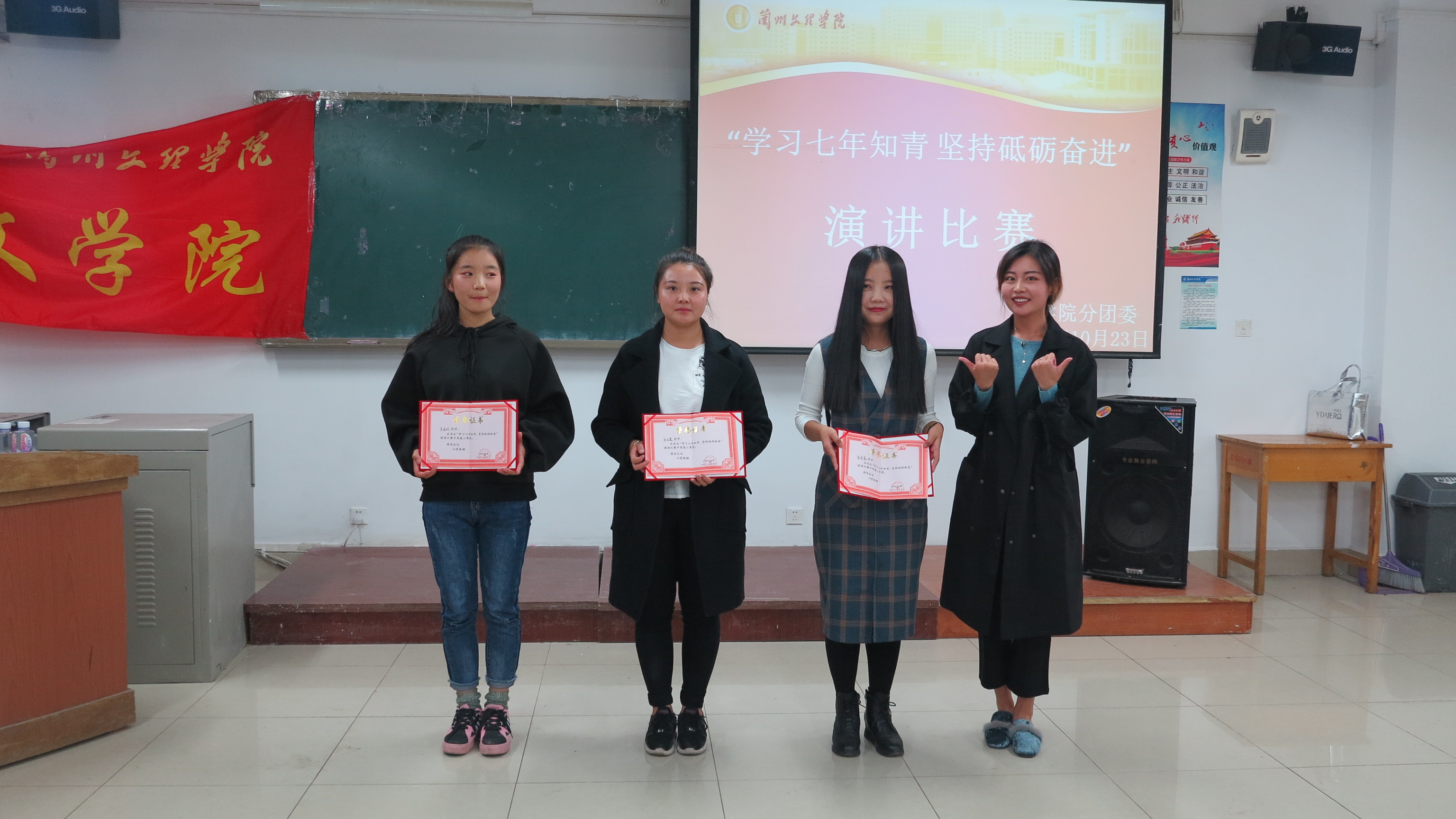 为贯彻落实校团委《关于在全校共青团组织中深入开展<习近平的七年知青岁月>学习活动的通知》的文件精神,推动 “一学一做”学习教育常态化、制度化,引导广大团干部、团员青年牢固树立政治意识、大局意识、核心意识、看齐意识和志存高远、脚踏实地、勇于创新、锐意进取的人生观、价值观、世界观,201710231930分,开云分团委在1号楼504教室举办了学习《习近平的七年知青岁月》主题演讲比赛,16名参赛选手及各班近100名同学参加了此次活动,活动由分团委组织部部长马思静主持。