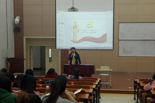 课程第二部分由郭萍老师为大家讲解,郭老师把课程分为十九大的政治成果,世界意义和核心内容三个部分进行解读。郭老师还为大家介绍了中共十九大的基本情况和主要议程,并详细解读了习近平总书记代表第十八届中央委员会在十九大上所作的报告,报告共分为十三个部分。最后,老师着重提出了习近平总书记对于青年的期许,青年兴则国家兴,青年强则国家强,当代青年应该成为新时代的弄潮儿。讲解结束后,老师给同学们留下了思考作业:学习十九大精神,坚定信念做时代先锋,帮助大家更好的理解和巩固。
