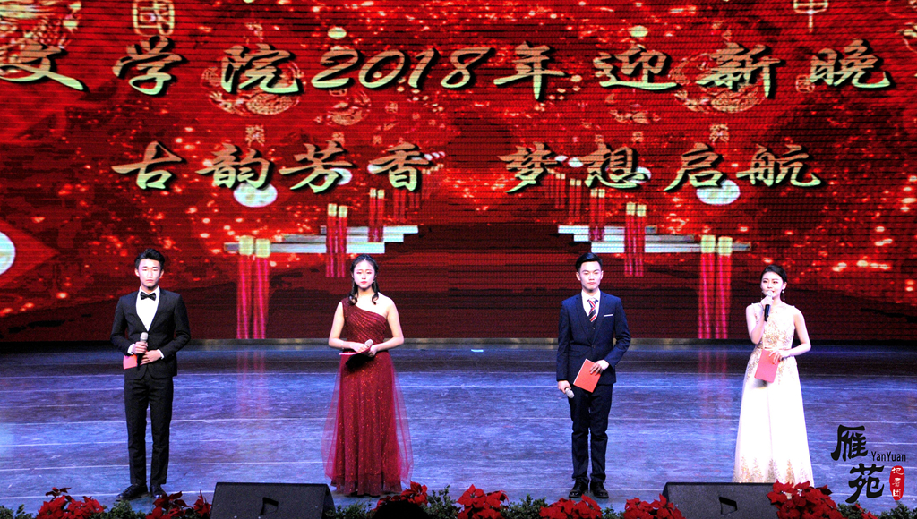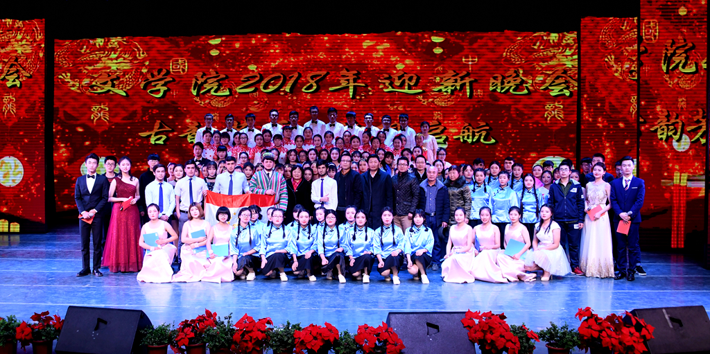 随着舞台大幕的缓缓拉开,开场舞《中国龙》气势如虹,用鲜艳的中国红,点亮了全场。鼓声阵阵,是中华儿女的呐喊,条条巨龙,展现了中华民族的气节;17级汉语言二班的带来了朗诵《丝路赞歌》,同学们通过深情朗诵,表达了对丝路的赞美与热爱,感染了台下每一位观众;青春无限,激情飞扬,15级文秘班同学带来的现代舞《Carnival》,彰显了他们的活力与自信;相声是一种既经典又能巧妙地结合现代生活的艺术表演形式,17级汉语言3班两位男同学的相声《众口难调》,用诙谐幽默的语言,给大家送来了新春的欢乐;17级文秘班的同学带来了合唱《大中国》,同学们用歌声来抒发着对祖国母亲的爱恋;舞蹈《粉墨》,向我们展现着中国古典美韵;欣赏了中国古典舞蹈的婀娜多姿,17级文秘班的同学带来的舞蹈《阿拉伯之夜》展现出独特的异域风情,同学们用热情活力的舞姿让我们仿佛置身于拥有迷人风情的异域;艺馨话剧社带来的小品《高考甄嬛》,将甄嬛体与高考这一热点话题结合起来,诙谐幽默中揭示同学们对高考的感悟;歌伴舞《天耀中华》通过男女对唱,伴以优美动人的舞蹈,深切的表达了同学们对祖国的敬爱之情;经典话剧《雷雨选段》,表达了17级戏剧影视文学班的同学对《雷雨》这部经典著作的感悟;16级戏剧影视文学班的同学则带来了的舞蹈串烧《哎舞哟舞》,同学们充满青春活力,用靓丽的舞姿展现了青年人的激情;接下来是16级汉语言三班的同学带来的相声《巧对对联》,两位女同学妙语连珠,展现出中国优秀传统文化的独特魅力;欣赏过了中华文化的博大精深,由公司职工带来的精彩舞蹈表演《Chinu chin》则带我们走出国门,领略了异国他乡绚丽多姿的民族文化;网络歌曲陪着很多人度过了青春时代,16级汉语言1班同学带来的舞蹈《燕归巢》,则将曼妙的舞姿融入我们熟悉的歌曲,给人耳目一新的感受;舞蹈《美落子》和《茉莉花》,同学们用柔美的舞姿,让我们领略了中国南北方不同的民族文化。
