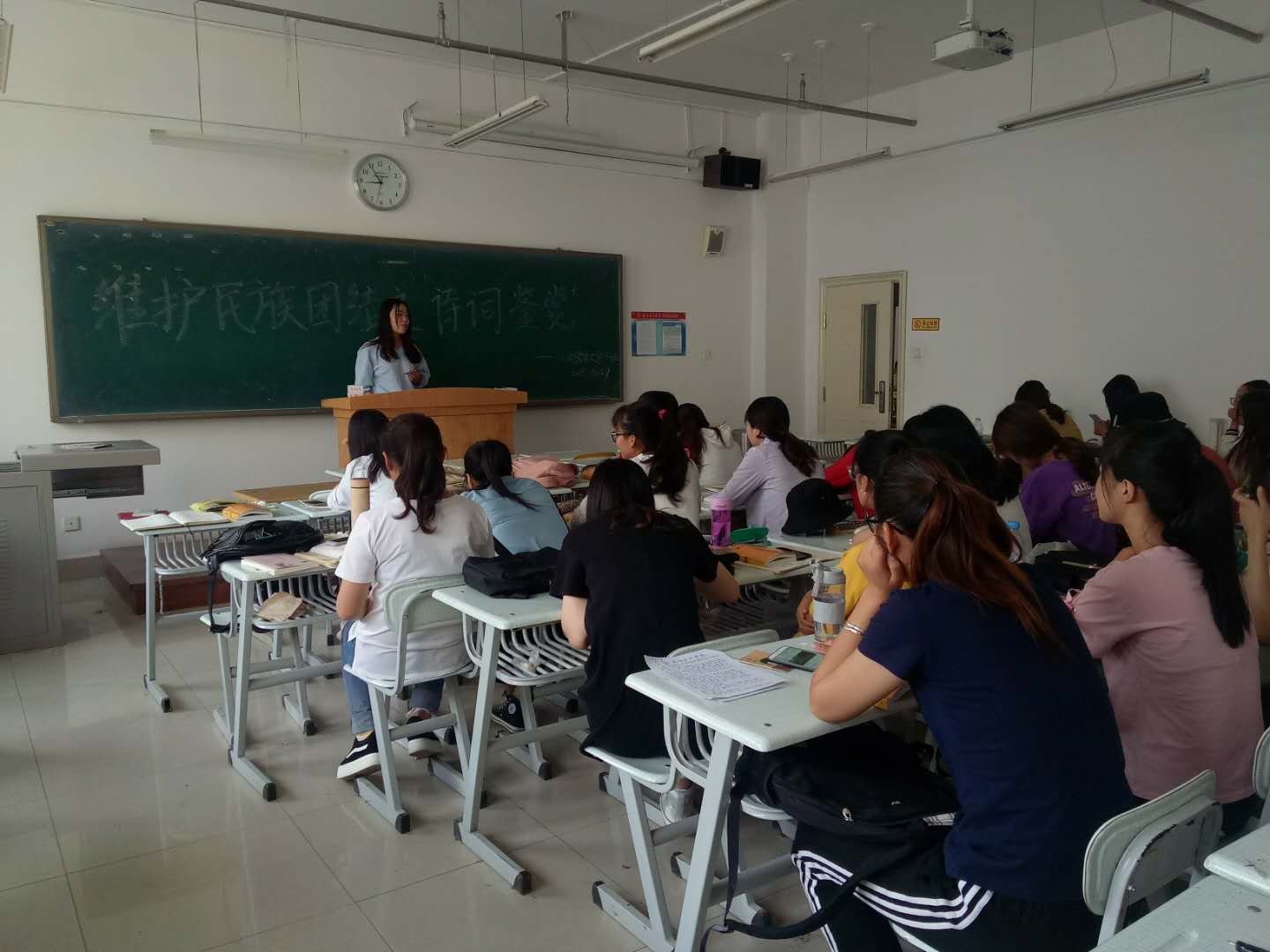 宣传月期间,分别组织各班开展了“民族团结一家亲”为主题的班会、民族故事宣讲会、诵读鉴赏中华诗词主题班会、民族电影观赏交流会、优秀民族宿舍评选等活动。在每场活动中,同学们认真交流,积极参与。他们一致认为中国革命的胜利和祖国的兴旺发达离不开各民族的团结。到了和平年代,各民族之间更应该互相尊重、和睦相处。在平时生活中,不说不利于民族团结的话,不做有损民族团结的事,与少数民族同学相处时,要自觉尊重其风俗习惯。在民族故事宣讲会上,各班少数民族同学踊跃参于,积极讲述发生在自己身上及周边民族同胞相亲相爱的故事。他们的讲述真诚、感人,现场气氛活跃,让大家看到少数民族同学的热情、友善,增进了不同民族之间的感情。在“维护民族团结 诵读鉴赏中华诗词”的主题活动上,大家强烈感受到中华民族传统文化的博大精深,深刻认识到只有各民族团结发展,才会有共同的美好前景,中华民族才会有更强大的凝聚力和民族精神。观影交流活动上,同学们看完少数民族题材影片后纷纷抒发了自己的感想。