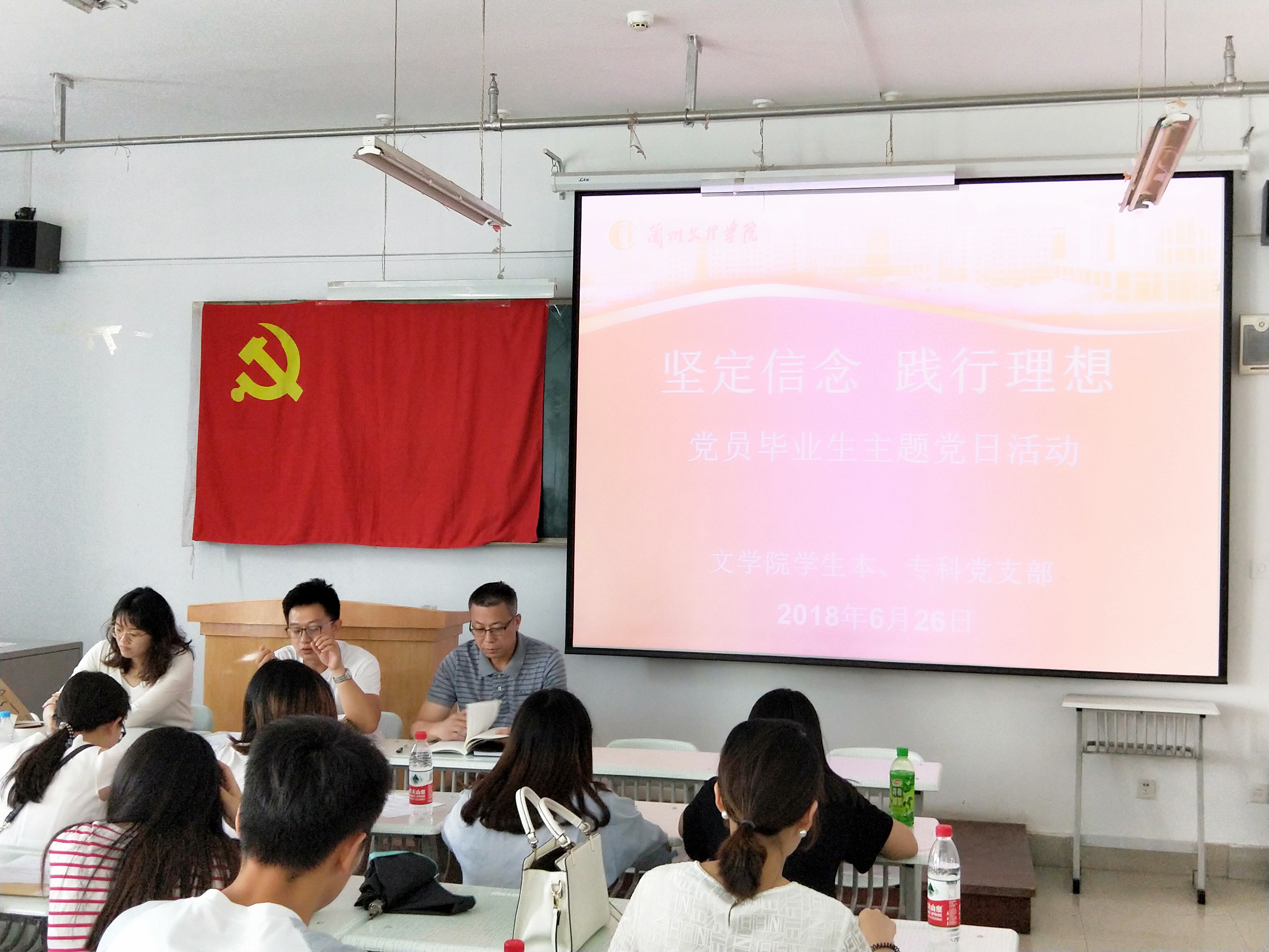 凌毅书记作了热情洋溢的讲话,他首先对毕业生党员们圆满完成大学学业表示祝贺,对同学们即将开启新的人生旅程送上祝福,充分肯定了同学们对母校的深厚情感与真切关注,感谢毕业生为学校发展所付出的努力和取得的成绩。同时对即将走上新的岗位的毕业生党员提出了三方面要求:一是坚定理想信念,继续加强学习,进一步增强党性修养,提升自身素质;二是遵守党纪党规,牢记四个意识,不做“口袋”党员、失联党员;三是要发挥党员先锋模范作用,要“不忘初心,牢记使命”,永葆党员先进性,在新的岗位上秉承一丝不苟的工作态度,做出成绩。凌毅书记强调,党员是一个政治身份,不是一个荣誉称号,要正确理解党员的身份,希望全体毕业生党员要积极响应学校号召,积极作为,勇于担当,克己修身,以身作则,继续发挥党员先锋模范作用,站好文明离校最后一班岗,以积极向上的精神状态投入到文明离校工作中来,在毕业生中树立文明离校的典范,同时希望全体毕业生党员在今后的工作学习中不断提高自身党性修养,时刻牢记自己是一名共产党员身份,为母校争光。