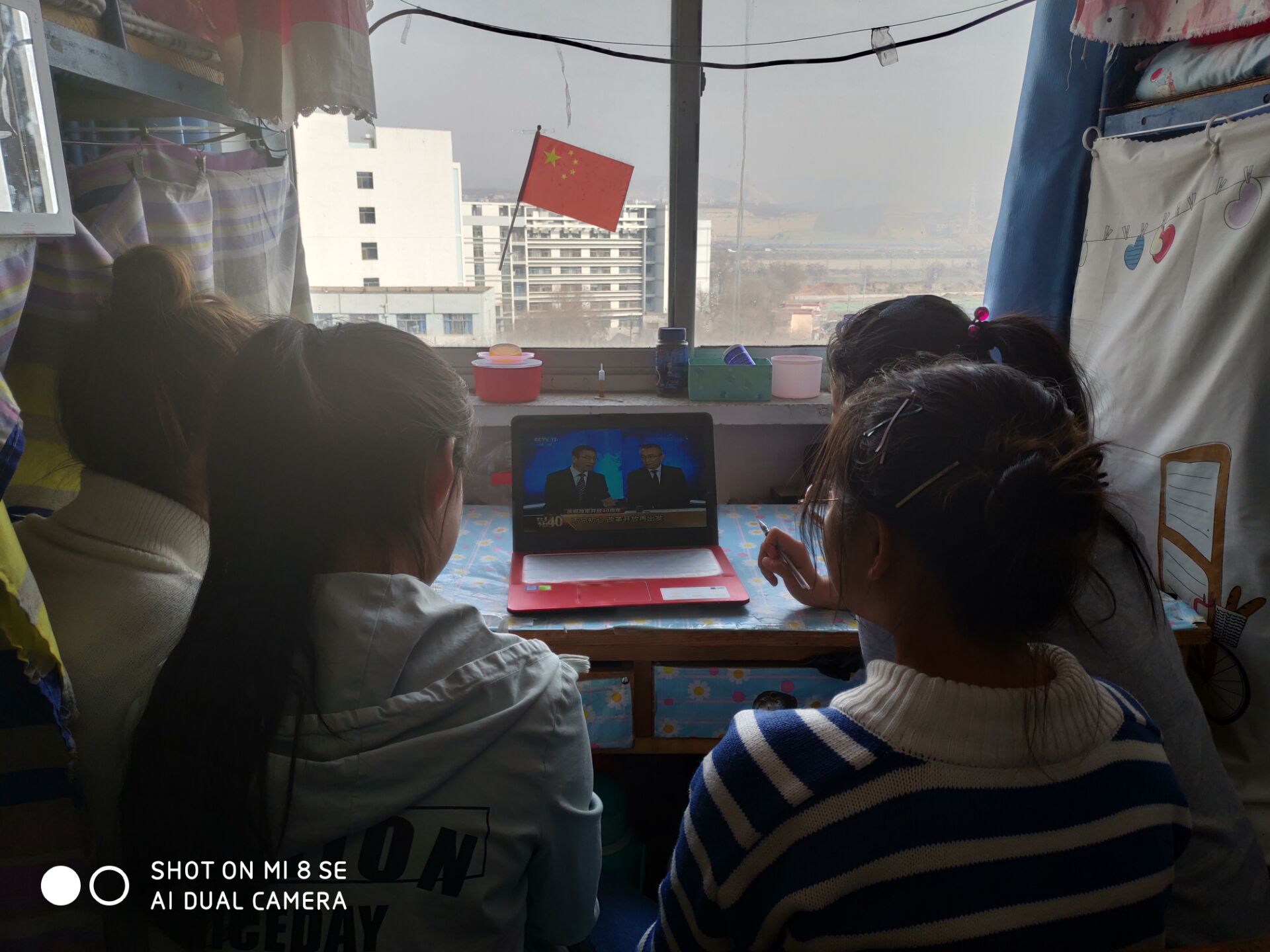 有的同学在宿舍用电脑、手机收看大会直播,他们个个激情澎湃,你一言我一语的交流着感想;同学们更是以带话题#中国有我##改革开放40周年#加自己感想,发朋友圈、QQ空间,表达着自己的激动心情。