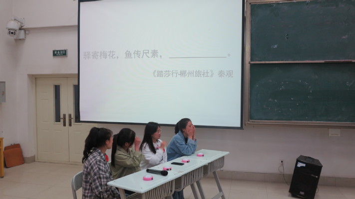 活动开始,首先由主持人隆重介绍出席评委及各参赛代表队,简要说明赛制规则及流程。随即各参赛代表队根据赛制依次有序入场就座。本次初赛形式多样,赛式灵活,富有趣味性与挑战性。各参赛队伍采用猜拳方式获取优先主动权,两两抢答对决,通过诗词填空,九宫格猜句及诗词赏析等形式展开激烈比拼。在活动过程,各代表队应答自如,沉着冷静,竞争激烈。台下观众情绪极其高涨,掌声热烈,气氛活跃。