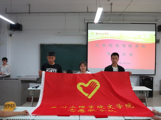 首先,由全体青年志愿者歌唱青年志愿者之歌。随后,由原青年志愿者文学分会会长刘杰总结上一年度的工作,紧接着由原文学分会书记谢艳玲宣布新任干部名单并向三位新任队长发放聘书。其次,新任志愿队长许珊妃发表对志愿活动的感想并对未来志愿工作作出规划,提出要共同发扬青年志愿者“奉献、友爱、互助、进步”的精神。