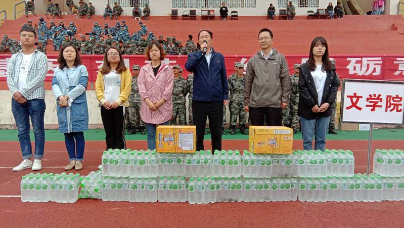 慰问时,郑建勤书记对军训的教官们表示了感谢,赞扬了同学们刻苦坚持、奋力拼搏、不怕吃苦、团结一致的精神面貌,张彦荣副经理则勉励参加军训的新生科学、文明、规范训练,树立正确的人生观、价值观,把在军训期间养成的良好品德和作风带到今后的学习生活中。学院老师们肯定了新生的军训成果,希望同学们继续发扬不怕苦不怕累的精神圆满完成军训任务。参训的新生们备受鼓舞,精神振奋,一致表示不辜负学院领导的期望,在接下来的时间中以饱满的热情完成军训。