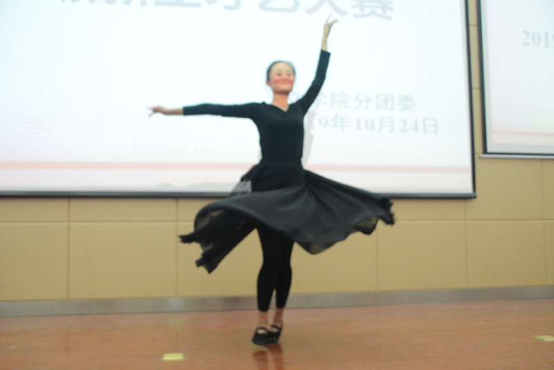 2019级文秘班韩筱雅和王娜以歌曲《老男孩》顺利开场。接下来出场的各位同学也载歌载舞,各展其才。2019级汉语言3班的靳蔚芝同学,以一首激昂的小提琴曲《紫色激情》,将才艺大赛推向高潮,赢得场内阵阵雷鸣般的掌声。汉语言文学1班的尉迟景雯以一支舞蹈《大鱼》,不仅展示了她优美的舞姿和坚实的舞蹈功底,更将大赛再次推向一个小高潮。最后,两位出席活动的音舞学院2017级学长对每位参赛选手做了专业的点评。、