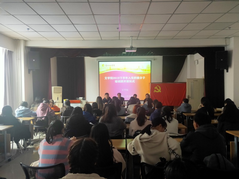 仪式第二项,辅导员贾馥瑞作了讲话,她强调,创办入党积极分子培训班,旨在加深入党积极分子对党的认识,端正入党动机,坚定入党决心。又对学员提出具体要求:入党积极分子最终考核会综合考虑出勤率、课堂表现、作业笔记、自己考试成绩等因素。希望各位同学能够做到全勤,课堂表现积极活跃,做好笔记,完成党课作业,加强对理论知识的学习,贾老师多次阐述参加入党积极分子培训班的重要意义,希望大家能够争取获得最大的收益。