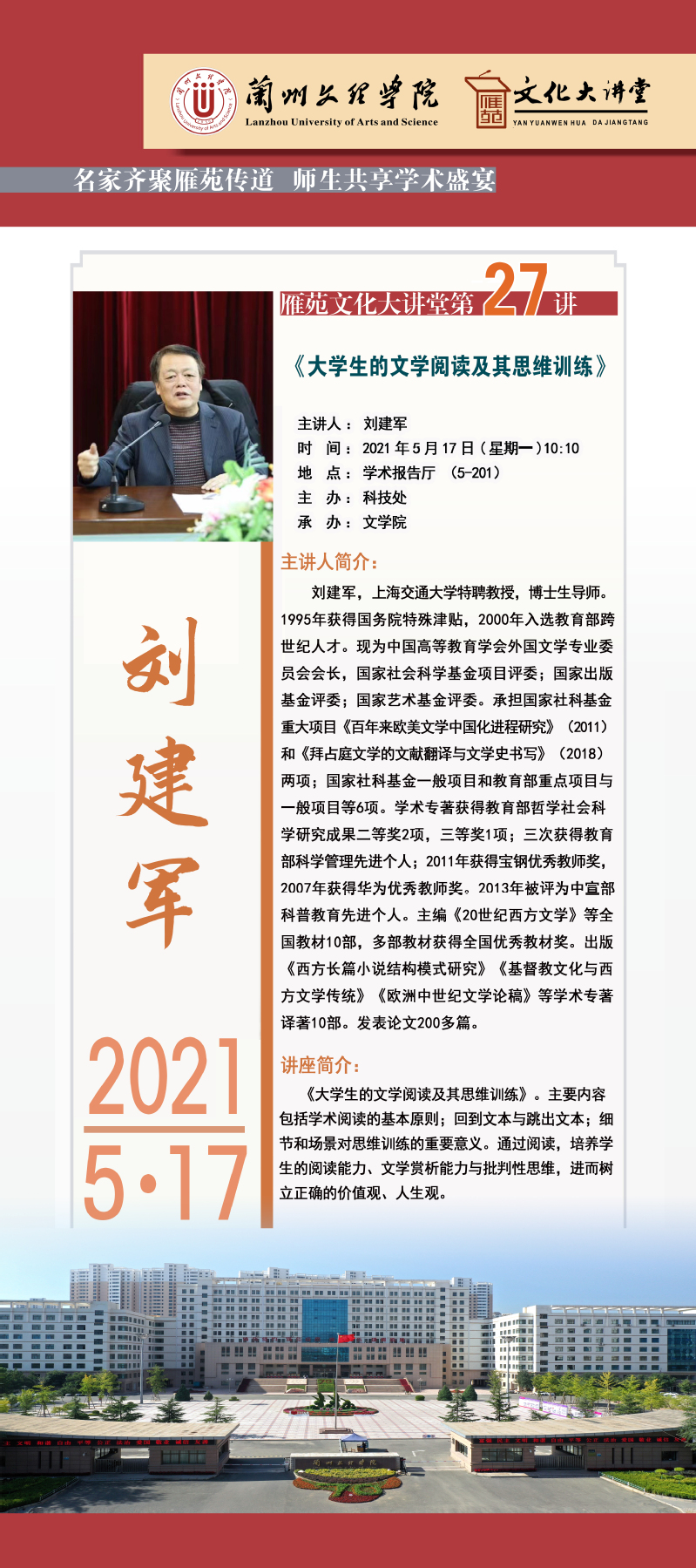 雁苑文化大讲堂第27讲——《老员工的文学阅读及其思维训练》
