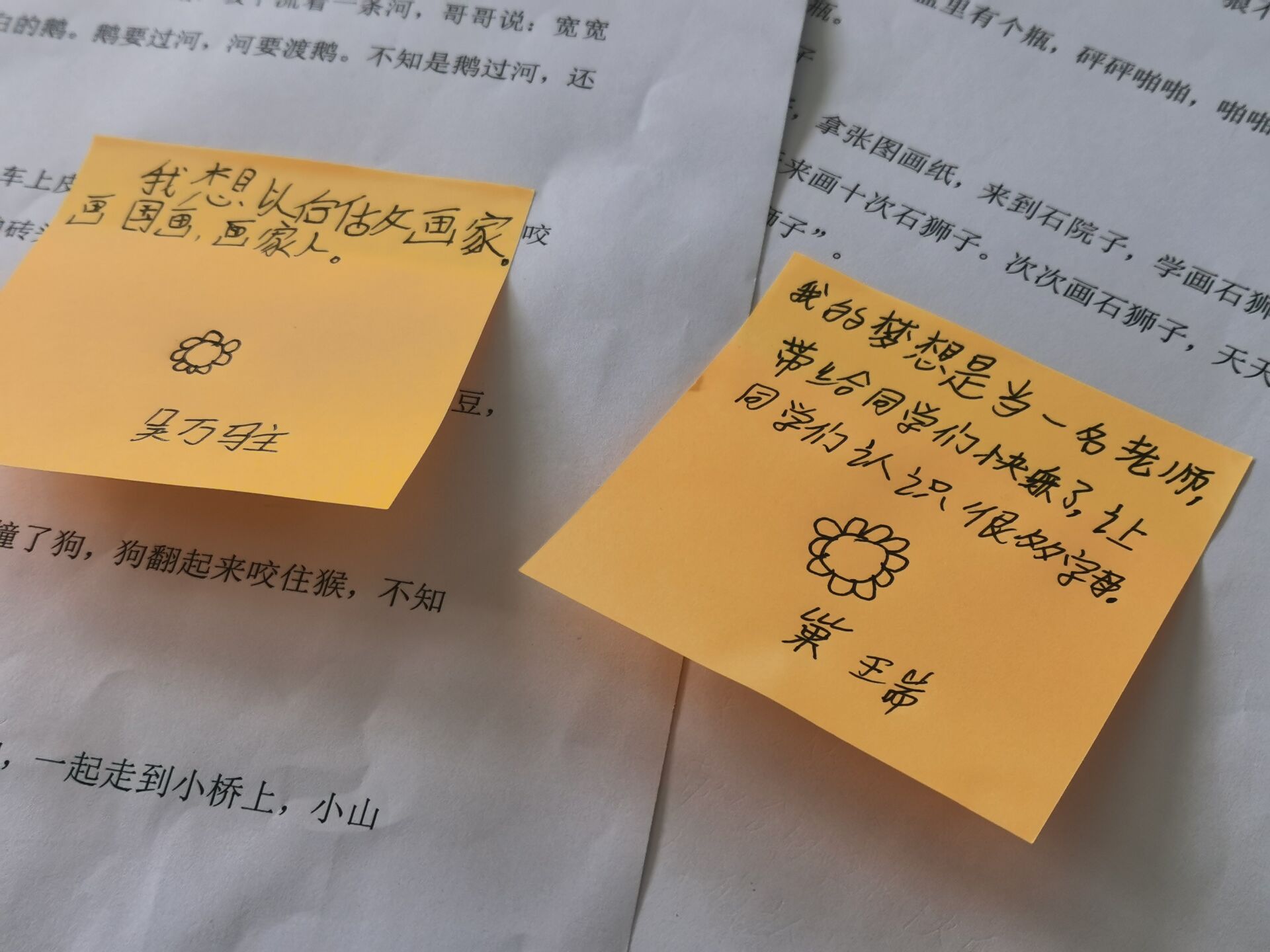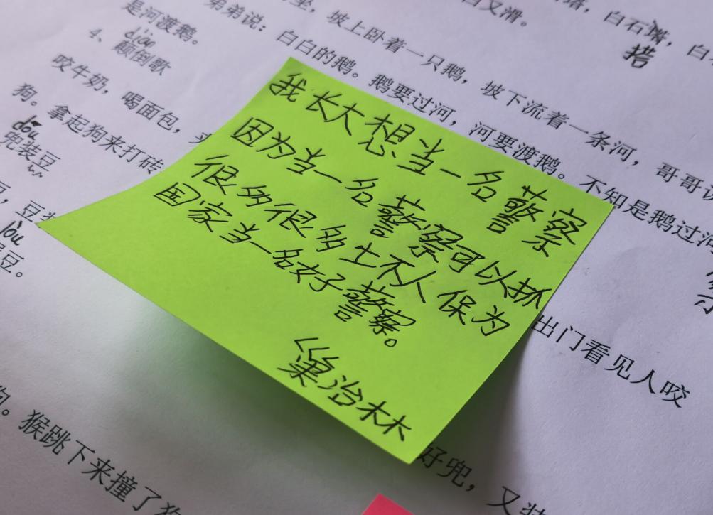推普送课,助梦飞翔。课堂上,实践团成员们要求员工写下自己梦想,他们有的希望当一名警察,有的希望当一名画家,还有的希望当一名老师。其中员工司润欣写道:“每个人都有梦想,我也不例外,我的梦想是当一位老师。都说老师像一个辛勤的园丁,浇灌着我们这些花朵;老师像一个蜡烛,燃烧了自己照亮了我们;老师是伟大的,所以我想当老师。”这里的员工非常努力,课堂上表现的很好,看着员工们求知的眼神,实践团成员们希望能将自己所学的都教给他们,世上无难事,只怕有心人,也希望孩子们能实现他们梦想,为祖国的发展添砖加瓦。