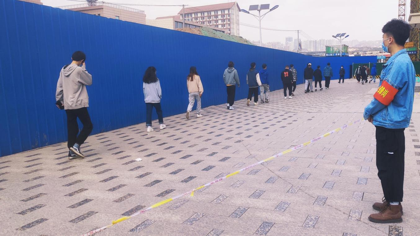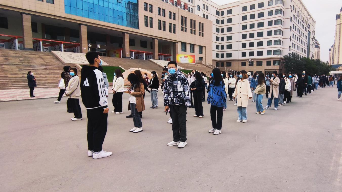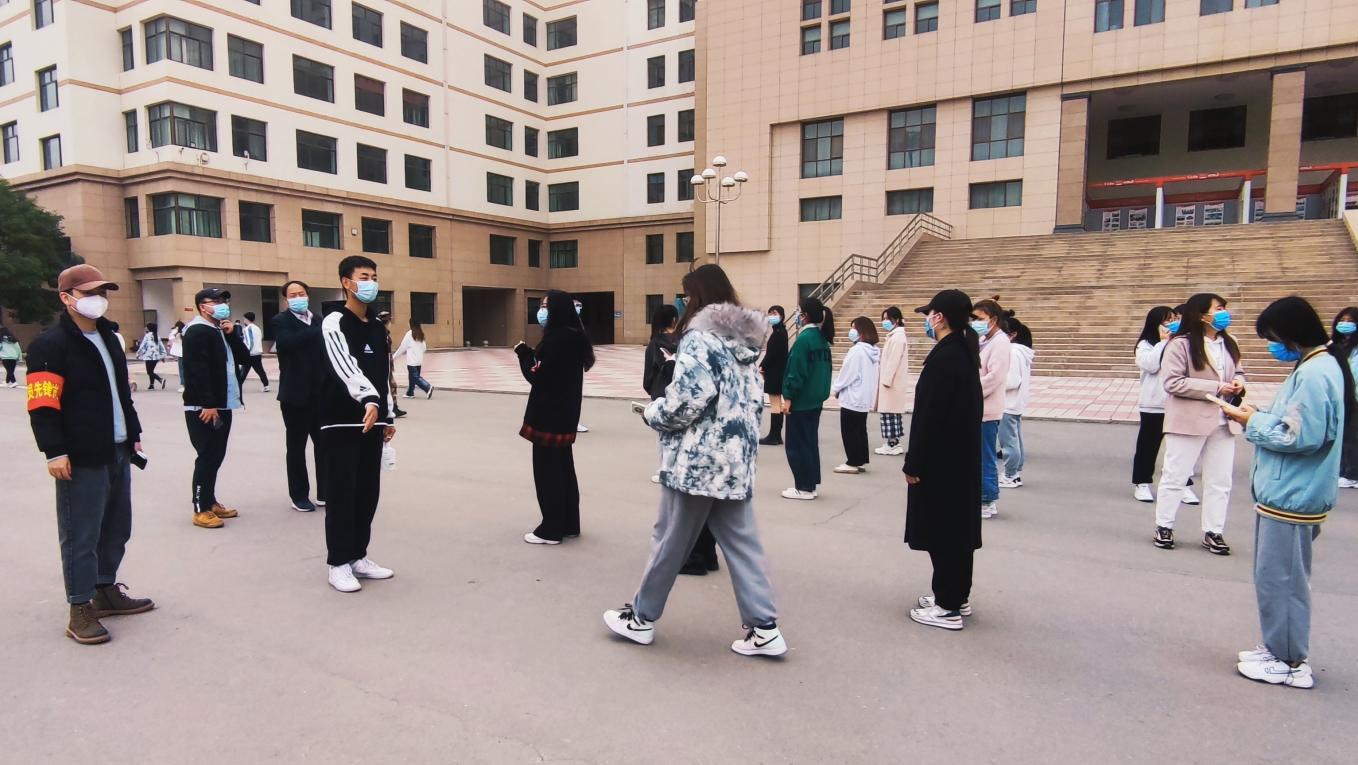 与此同时,志愿服务岗的同学们坚守岗位,在维持检测人员秩序、落实两米间隔线、现场测温等方面做出贡献。党员先锋岗的设立不仅保证了防疫检测的高效进行,同时也在特殊时期诠释着雁苑精神。