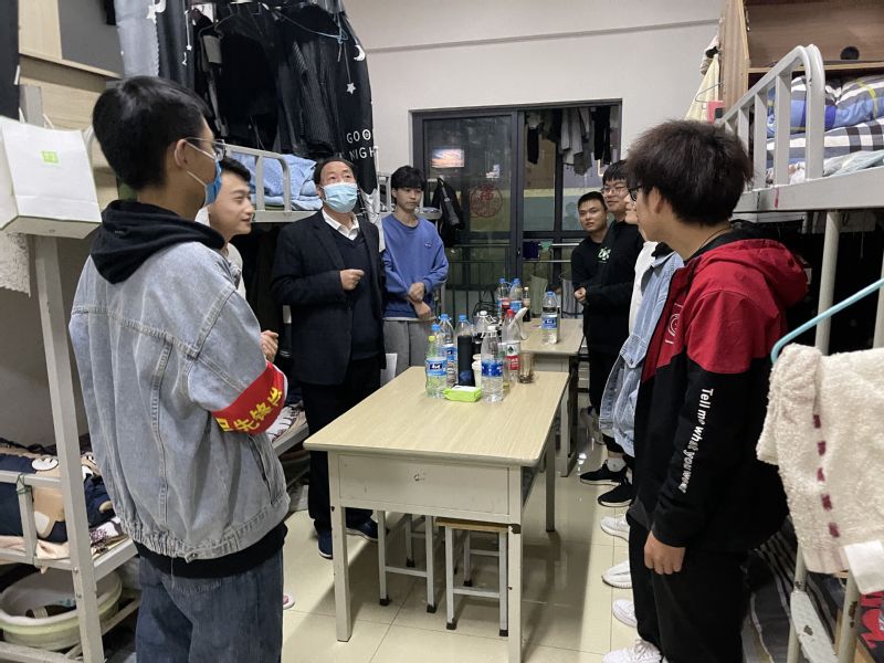 郑书记细心询问了同学们在疫情防控期间的生活、学习情况,叮嘱同学们一定要调整心态,认真参加线上学习;外出做好自身防护工作,保证宿舍干净整洁;并对同学们的人际关系交往、党员先锋防疫志愿服务等方面与员工展开亲切交流,并给予了指导。