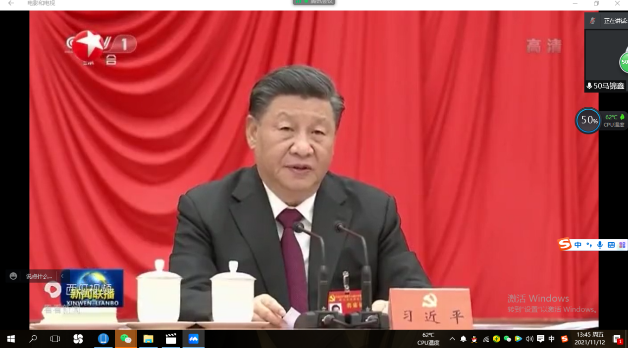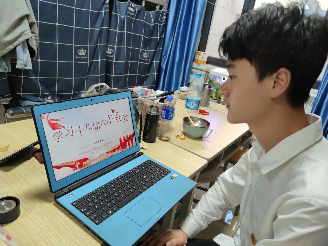 首先,主持人刘治斌同学带领大家简要回顾了本次十九届六中全会的召开过程,并为大家播放了六中全会公报解读视频。观看完视频后,同学们感慨良多,争相交流感想。郭花、梁佳慧、赵浩民、周秀洁等八位同学作为代表分享了学习后的感想。