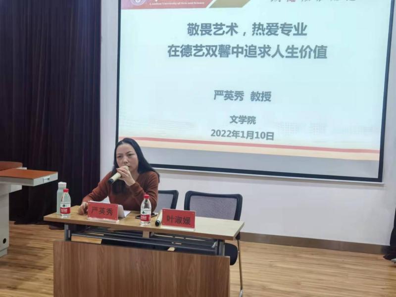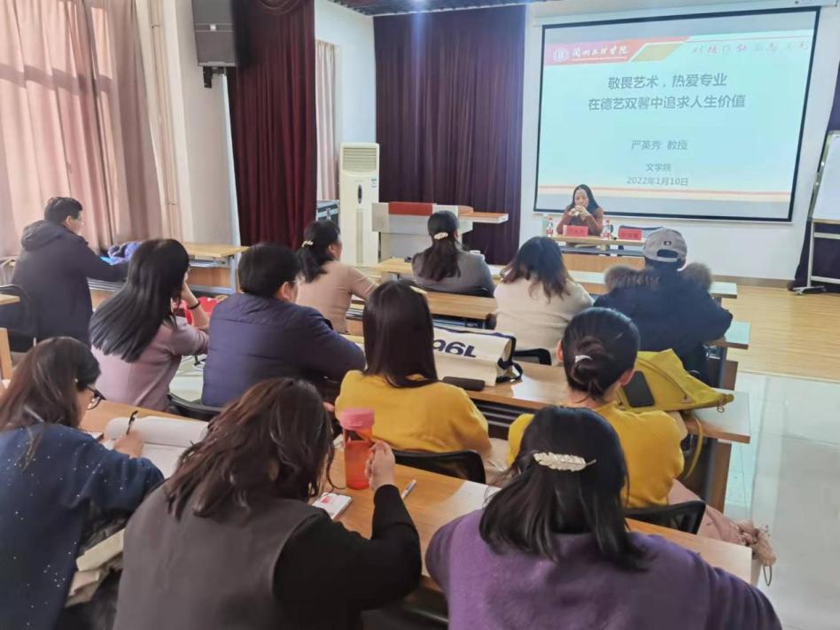 2022年1月10日下午,开云严英秀教授在综合楼5-611做了题为《敬畏艺术,热爱专业,在德艺双馨中追求人生价值》的学术报告,开云全体教师参加了讲座,讲座由开云经理叶淑媛主持。严英秀教授作为甘肃省作协副主席、作家参加了2021年12月14日在北京召开的中国作家协会第十次全国代表大会。这是严教授继第八次作代会之后又一次参加的中国文学界的盛会。