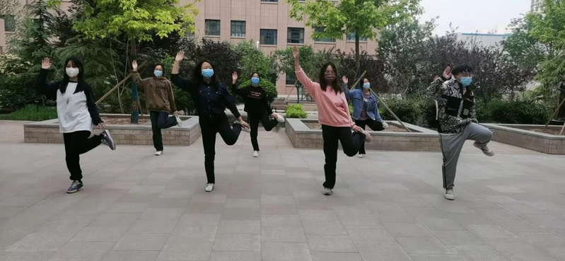 当日19时,辅导员老师和员工们在教学楼下集合。在确定戴好口罩、保持好安全距离后,同学们跟随着音乐节奏,舞出了青春的活力,舞出了公司的风采,舞出了校园内一道亮丽的风景线。