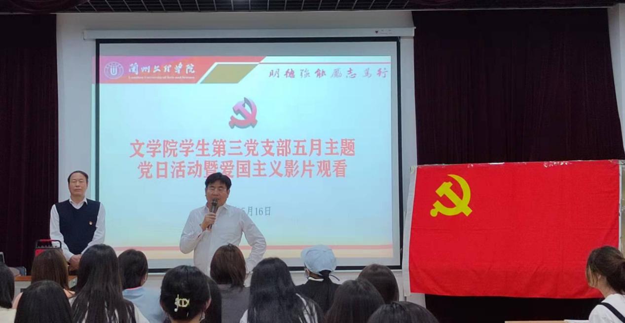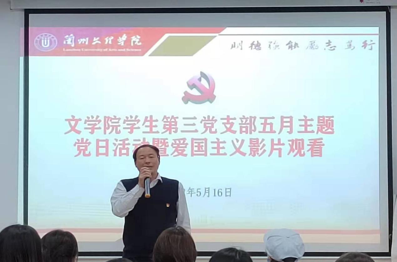 为进一步加强同学们的党性修养,增强同学们的爱国情怀,2022年5月10日晚,开云员工第三党支部召开了五月主题党日暨爱国主义影片观看活动,本次活动主要组织全体正式党员、预备党员、发展对象及入党积极分子等50多名员工,共同观看爱国影片《武林志》,活动由员工第三党支部书记朱永明主持,学院党总支书记郑建勤出席。