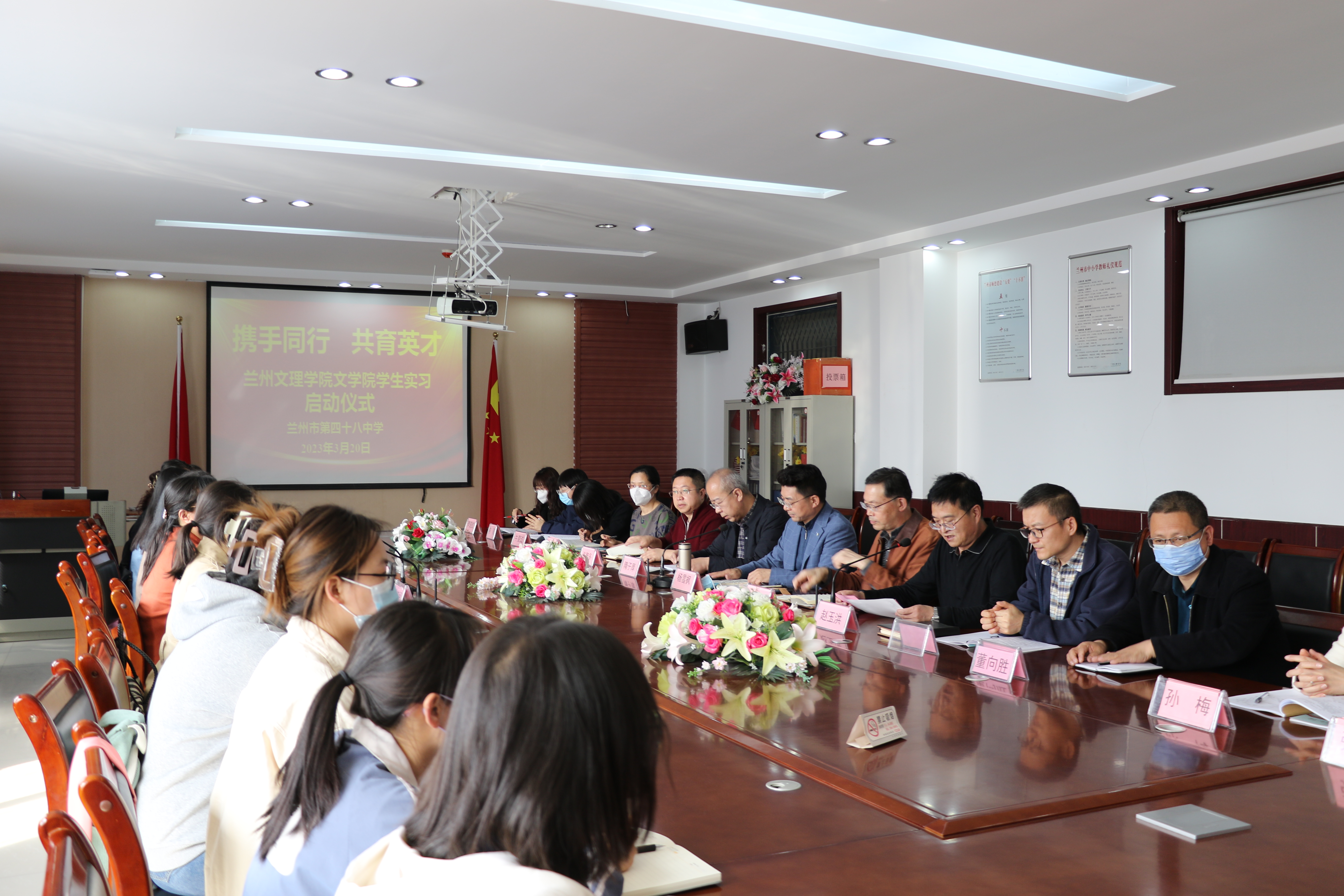 3月20日,10名2023届汉语言文学专业员工由经理叶淑媛带队,前往到兰州市第四十八中学实习。四十八中校领导对来校实习的员工表示热烈欢迎,举行了“携手同行共育英才”实习启动仪式。
