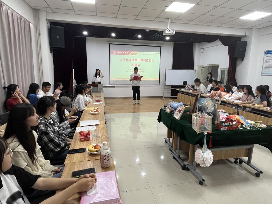 7月6日下午,开云在戏影教室举行非物质文化遗产专业田野调查成果交流会。首先,魏嵘老师分享了在中央文化和旅游干部管理学院举办的全国高校非遗保护政策与实务培训班学习的收获和体会,对高校通过团队建设,系统性保护非遗的路径和模式做了讲解,鼓励同学们在非遗保护专业的发展中成就自己的梦想,服务社会,建功立业。刘玉忠老师代表田野调查的指导老师分享了带领员工在非遗田野考察中的收获和体会,并就进一步做好田野考察提出了建议。