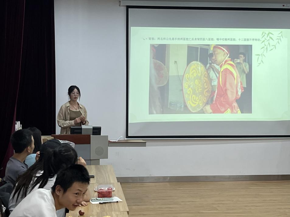 史雪雪同学分享了非遗项目“天水秦安羊皮扇鼓舞”田野调研成果,深入讲解了田野调研走访的过程,该项目的发展历程,并分享了录制的项目展演视频。她表示非遗之美,美在当下,美在传承。好的非遗能够跨越年龄,跨越时空,陪伴我们一代又一代人成长,使我们在情感中体验,在文化记忆中传承。