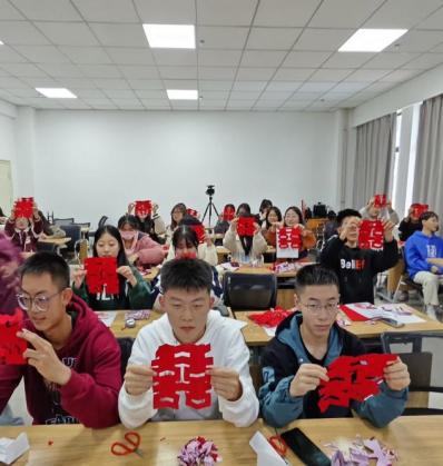 随后,叶长友向同学们教授了“喜”字的剪纸方法,以此为契机,鼓励同学们大胆想象、大胆构思、大胆尝试,巧妙运用技巧将纹样、图谱等要素大胆吸收、有机融入到作品里,以此创作出独一无二的艺术作品。