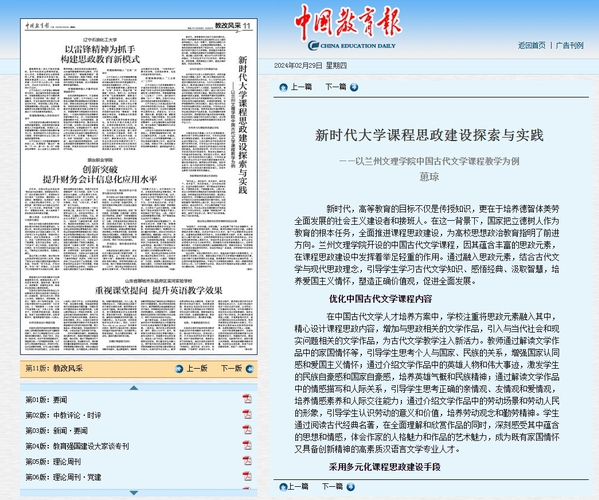 2月29日,《中国教育报》刊登公司教师葸琼课程思政文章《新时代大学课程思政建设探索与实践——以开云全站中国古代文学课程教学为例》,原文如下:
