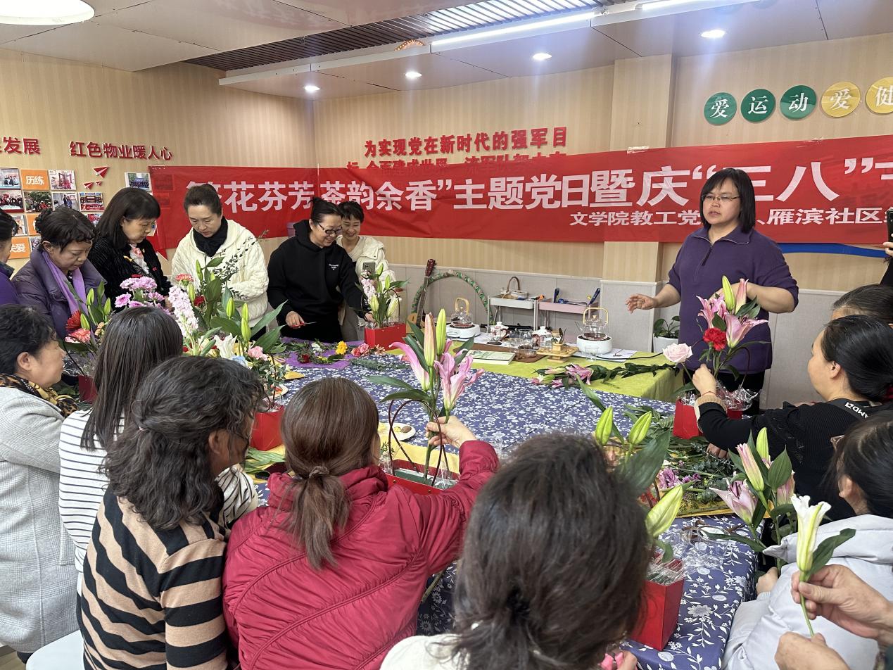 在“三八”国际劳动妇女节到来之际,为丰富广大女性党员群众的文化生活,展现妇女同志对 美好生活的向往,进一步增强基层党组织凝聚力,开云教工党支部与雁滨社区组织开展了“繁华芬芳,茶韵余香”为主题的主题党日活动。