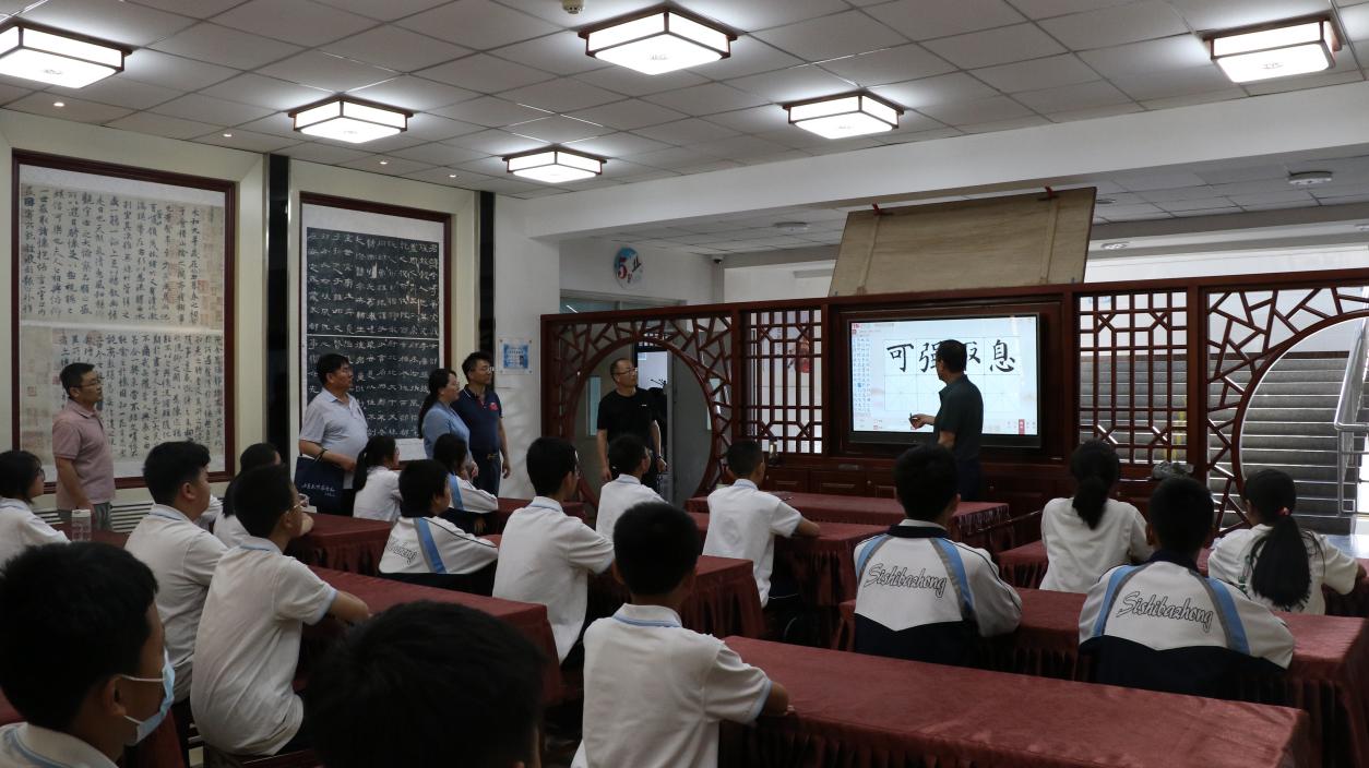 调研会结束,叶淑媛一行在兰州市第四十八中学董事长杨雪枫等人的陪同下参观校园活动、文化建设、特色课程等内容。