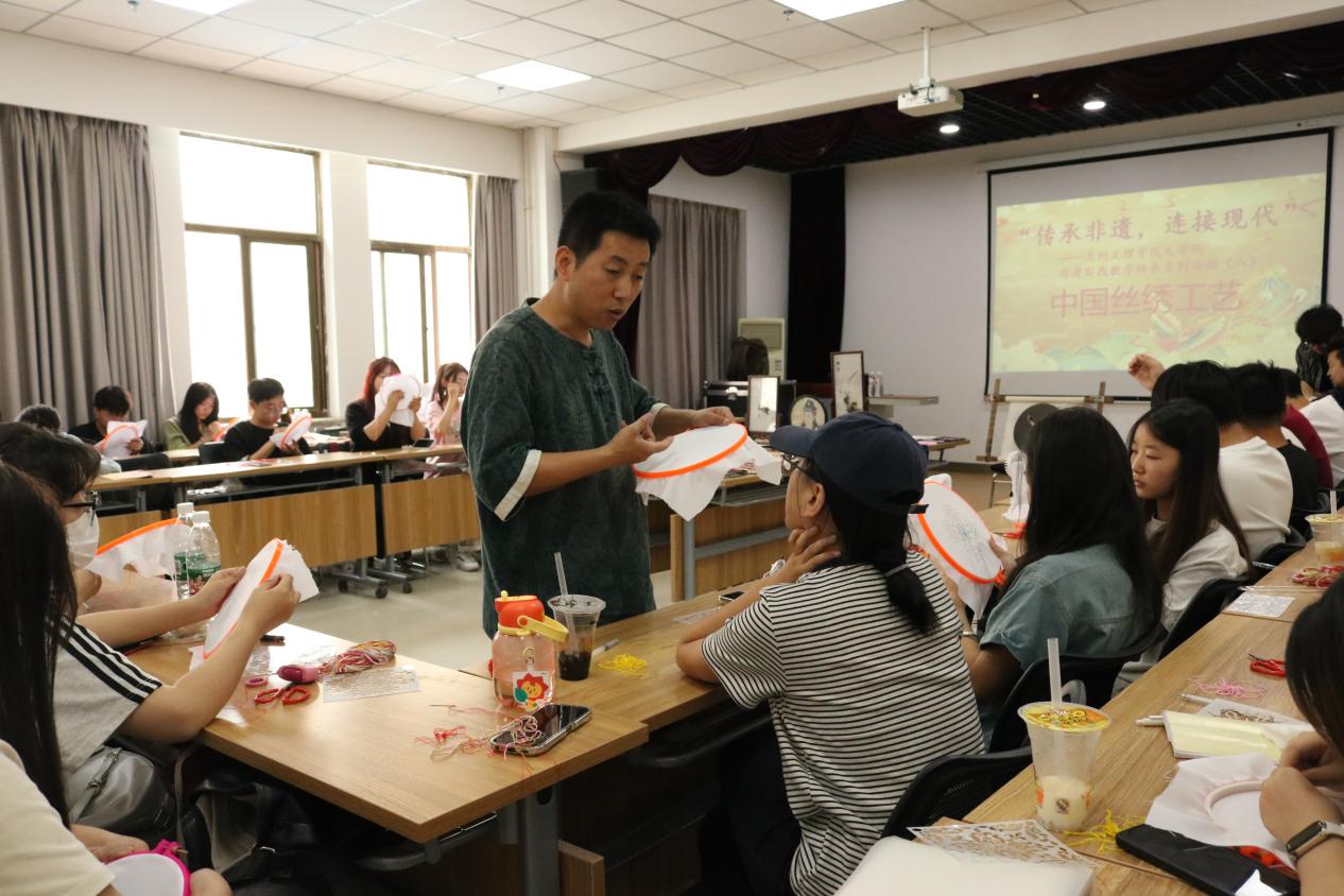 此次非遗实践教学活动不只是刺绣工艺的教学,更是一场审美艺术的非凡体验。让同学们对非遗有了更为具象化的认识,理解到非遗文化的传承过程的不易,引导同学们自觉担当起传承发展中华优秀传统文化的使命,要在秉承传统、不失其本的基础上寻找非遗灵韵,更要着眼未来,与非遗携手,推动非遗更加全面地融入现代生活。