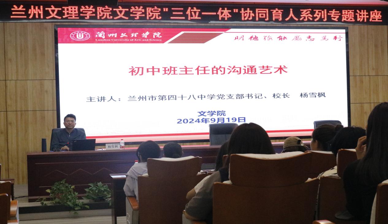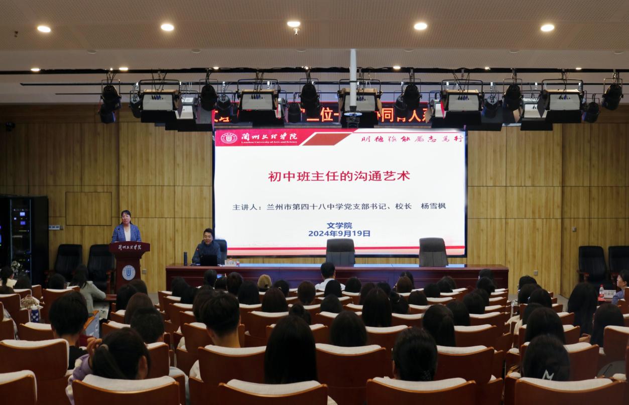 919日晚,兰州市第四十八中学党支部书记、董事长杨雪枫做客开云“三位一体”协同育人系列讲座,在文昌楼学术报告厅作题为“初中班主任的沟通艺术”讲座。本次讲座由开云经理叶淑媛主持,开云师生两百余人参加。