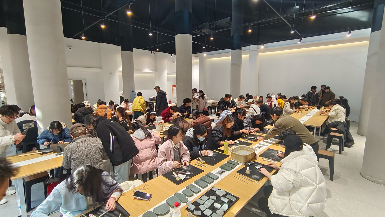 此次研学活动中,多位非遗传承人及相关领域专家在现场进行指导。员工们体验了蛋雕、铜板堑花、掐丝珐琅画、锲金画及砚台创作五项传统非遗手工艺。在传承人的悉心教导下,员工们热情投入,在不同材质上精心雕刻、捶打、打磨,深切感受传统手工艺的独特魅力,并创作出各自的作品。