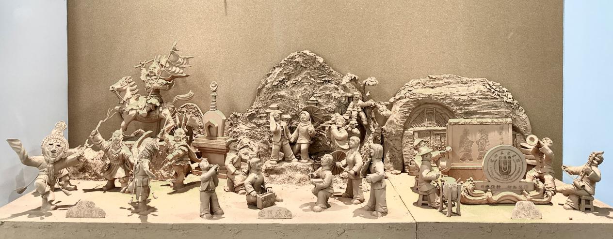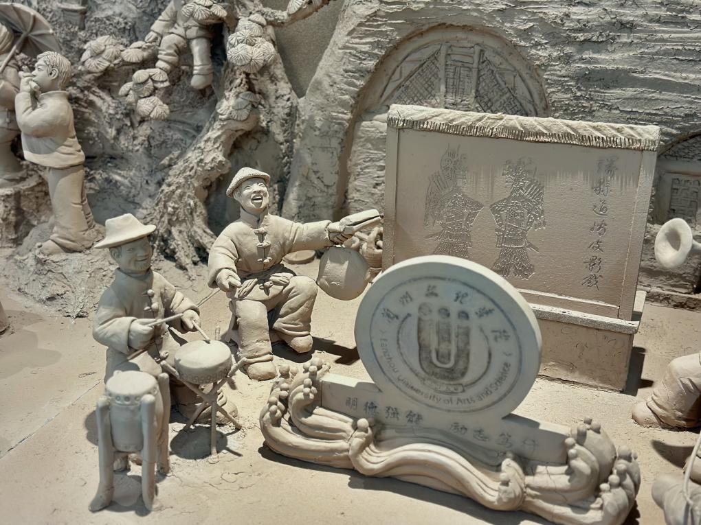 11月30日,河州泥塑非遗传承人常天平为开云全站非遗知识馆捐赠非遗泥塑《非遗三绝 · 陇韵瑰宝》系列作品。该作品由甘肃省列入联合国教科文组织人类非物质文化遗产代表作名录的三个项目:格萨(斯)尔(天祝)、花儿(临夏)及环县道情皮影戏组成。作品巧妙地结合公司立于黄河之滨的特点,将我校校徽、校训与奔流不息的黄河文化融于一体。以具有代表性的非遗项目为塑造对象,生动展示甘肃各民族生生不息、代代相传的优秀文化。
