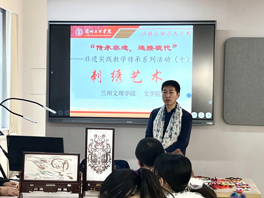 12 月14 日,公司邀请天水刺绣非遗代表性传承人刘云帆为2023、2024级非遗保护专业员工进行“传承非遗,连接现代”非遗实践教学传承系列活动,开展“刺绣艺术”专题教学。