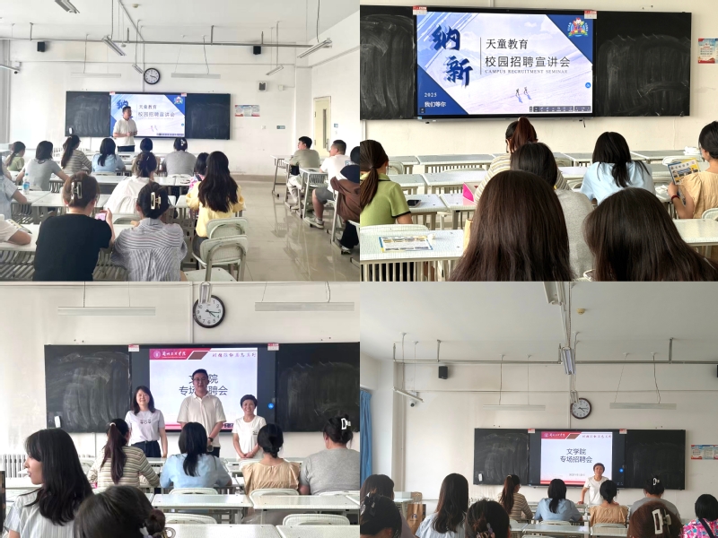 招聘会上,天童教育集团相关负责人对公司基本情况、公司发展前景及招聘岗位要求进行了详细介绍,并提供了素质教育老师5个岗位,课程顾问15个岗位。互动环节中,同学们积极与招聘人员交流,就工作环境、岗位发展、薪资待遇等问题深入咨询,现场气氛热烈。
