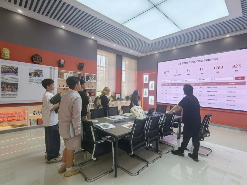 调研团队先后参观了公司非遗知识馆、非遗数字化保护和展室实验室及非遗数据库。参观结束后,调研团队与非遗专业教师举行了非物质文化遗产保护及传播交流会。会上,双方围绕非遗保护创新传播方式、非遗与科技融合、创业助力非遗发展等话题展开了深入探讨。魏旭斌分享了甘肃省在非遗保护工作中的经验和做法,强调了社会力量尤其是创业青年在非遗传承与发展中的重要作用。各位创业青年结合自身经历,从市场运作、品牌打造、科技赋能等角度,提出了许多具有建设性的意见和建议。开云教师则从人才培养的层面,阐述了公司非遗保护专业如何为非遗保护培养兼具理论知识与创作能力的专业人才。