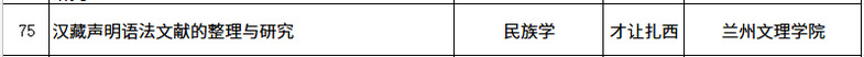 才让扎西的甘肃省哲学社会科学规划项目《汉藏声明语法文献的整理与研究》以150多部汉藏声明文献为研究对象,旨在对这些汉藏声明文献进行细致的分类和专题论述,挖掘汉藏声明的共同主题进行比较研究,为汉藏语言文化交流史的深度挖掘、传统声明学科的体系化建构提供文献支撑和学术依据。