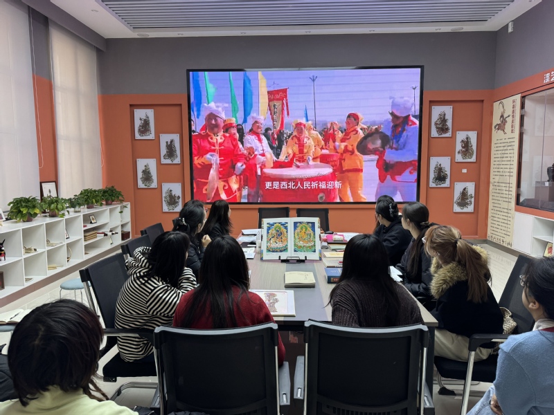 会上,大家集体学习了习近平总书记关于非物质文化遗产保护的重要论述,结合寒假“返家乡”实践活动,将理论学习与专业实践深度融合,发挥非遗保护、戏剧影视文学、文化产业管理等专业特色,以短视频方式展示了裕固族民歌技艺、甘肃社火、华锐锅庄、庆阳香包、兰州太平鼓等陇原非遗项目,分享拍摄历程与实践心得。